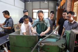 5月18日上午,由车晓舟教授带队的来自kaiyun官方网站入口阳江校区材料学院的八位老师,到阳江十八子集团“阳江小刀制作技艺”传习所进行实践学习。