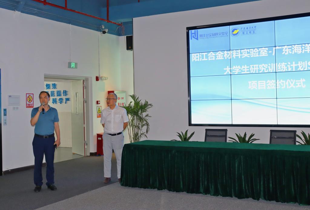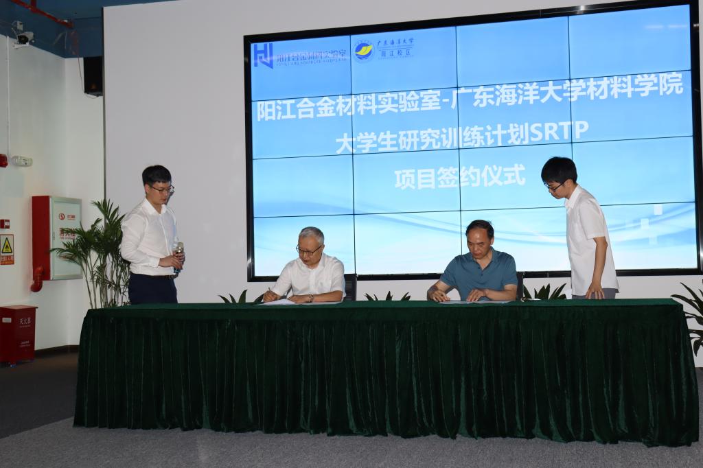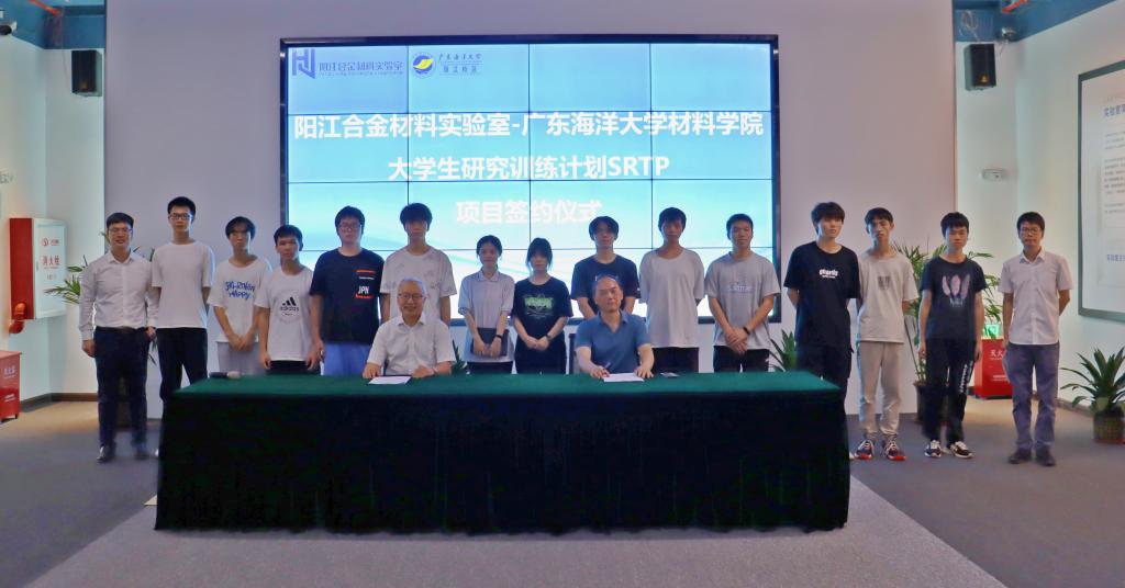 5月25日下午,阳江合金材料实验室-kaiyun官方网站入口材料学院“学生研究训练计划”(SRTP)签约仪式在阳江合金材料实验室举行。阳江合金材料实验室主任尚成嘉教授和kaiyun官方网站入口材料学院院长车晓舟教授代表合作双方签署了项目计划书。2022年度开展2项SRTP项目,共14名学生参加,由郭福建博士、袁胜福博士和李伟章老师担任指导教师。材料学院全体师生见证了项目计划书的签订。