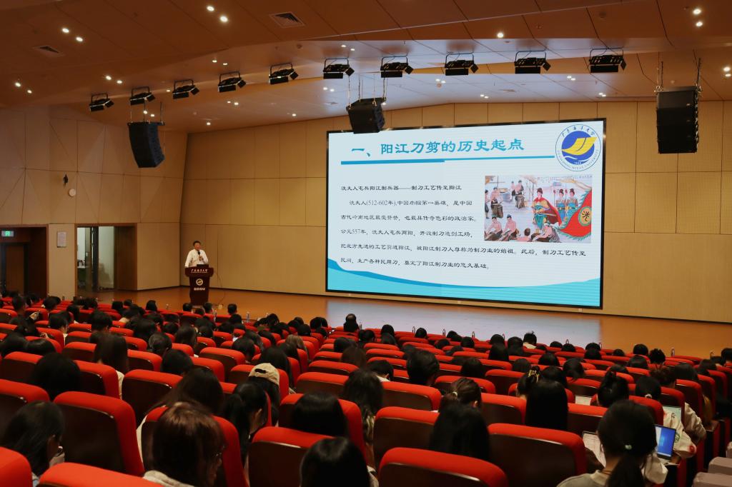为帮助学生学习了解五金刀剪行业,激发专业兴趣,加深从事相关生产或研究人员对行业的理解和认知,2023年11月15日下午,由kaiyun官方网站入口材料科学与工程学院师文庆院长组织,在阳江校区管委会陈永强副主任的大力支持和关心关怀下,特邀阳江市佰伦实业有限公司总经理、阳江市政协常委谭中明先生前往校区开展讲座,与师生一起探究阳江刀剪文化的历史渊源、发展过程和未来展望。