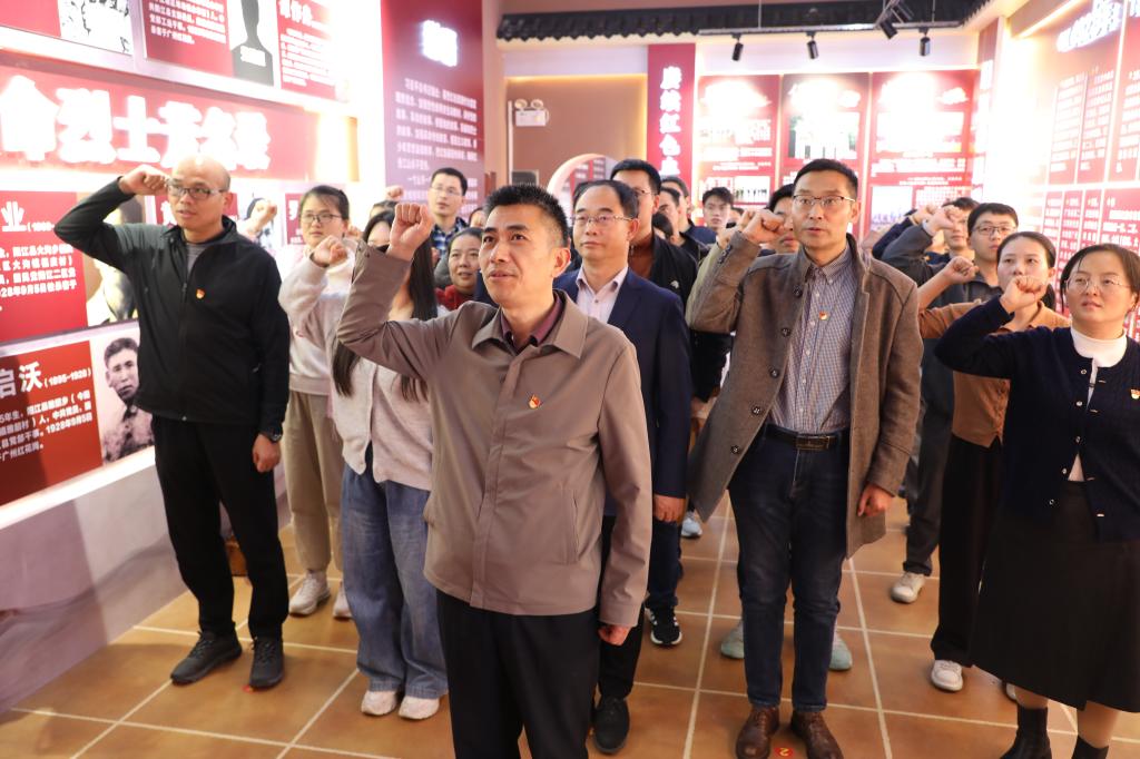 雅韶乡农会是阳江第一个乡农民协会,成为阳江农民运动的先导。红色文化展览馆中详细介绍了谭作舟、谭启沃等雅韶烈士的生平事迹,以及革命老区史等。党员同志认真观看,从革命先辈们的奋斗岁月、艰辛历程中体会革命先辈们抛头颅洒热血的英勇无畏精神、坚韧不拔的气概。学院党总支书记李毅带领全体党员在展馆内举行了重温入党誓词仪式。
