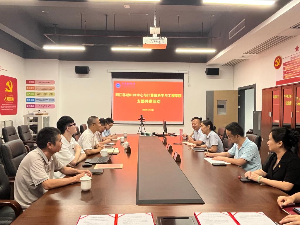 2025年5月30日,计算机科学与工程学院教工党支部与阳江移动DICT中心党支部联合开展共建活动。计算机科学与工程学院党总支书记刘利群,阳江移动DICT中心总经理、党支部书记陈国铸,学院教工党支部党员代表参加此次活动。