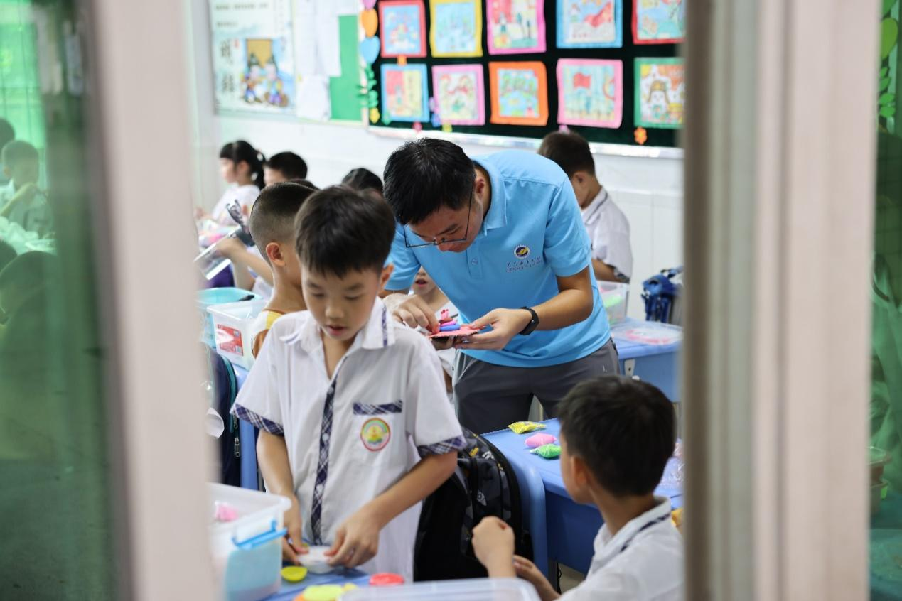 参加活动的学生对应辅导低年级超轻黏土、中年级插花、高年级水果拼盘三个活动项目。期间,同学们费尽心思帮助孩子们不断改进手工作品,温声细语地陪伴他们。最后阳江市实验小学林校长用自己获评阳江市劳模的经历鼓舞着我们要为中国的新征程继续拼搏奋斗。