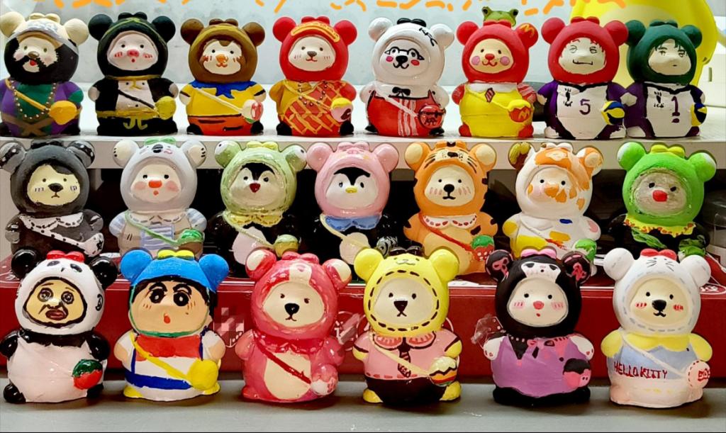 活动结束后,经过学生们的精心涂鸦,那些原本普通的白色石膏娃娃已经变得五彩斑斓、栩栩如生。每一件作品都是学生们心灵的见证,是他们对生活的独特感悟和表达。