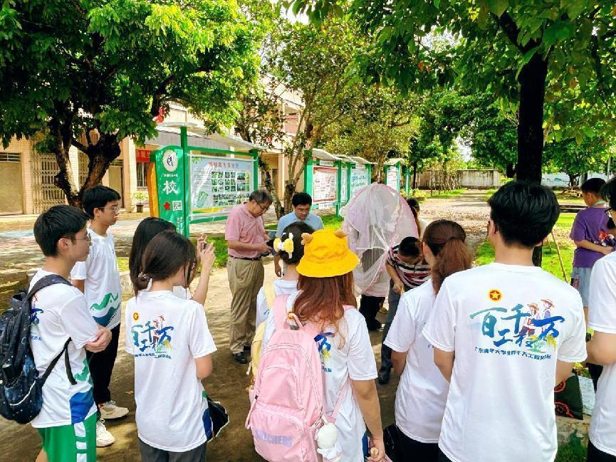 暑假期间,带“知”进乡突击队在实践地阳江市江城区双捷乐安小学开展了七天的团队实践,囊括了支教、家访、调研、捐赠四大版块实践内容。团队以民族特色文化为载体发展乡村美育,推动教育振兴带动文化发展、文化发展带动乡村振兴的积极连锁反应,赋能阳江地区教育新发展。