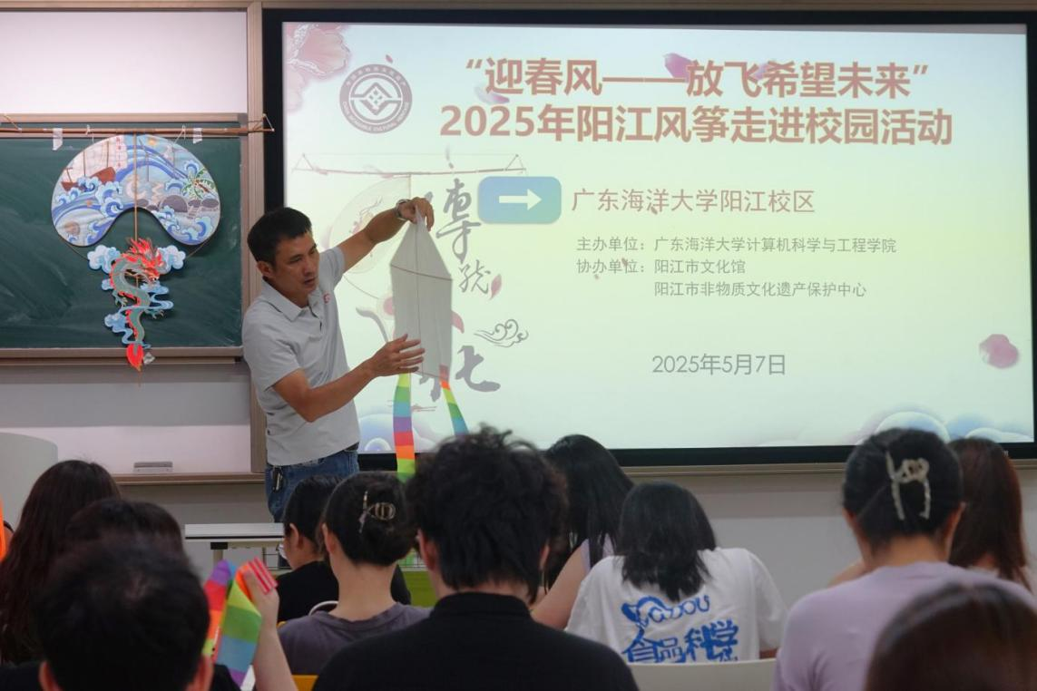 为响应新时代美育教育号召,推动传统文化与校园实践深度融合,5月7日下午,计算机科学与工程学院联合阳江市文化馆、阳江市非物质文化遗产保护中心,特别策划“迎春风,放飞希望未来”主题活动。活动通过风筝文化讲座、非遗技艺体验、创意制作与放飞实践,带领师生共同感受传统手工艺的魅力,在春风中书写青春与文化的交融篇章!