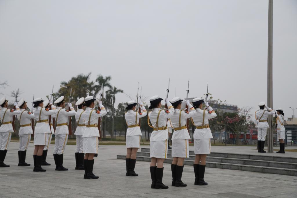 随着升旗礼毕,悠扬的校歌《蔚蓝之歌》缓缓响起。全体师生并肩而立、齐声合唱,熟悉的旋律萦绕耳畔,“碧海旭日辉映南疆,海大精神育我成长”等歌词深深镌刻着学校的精神印记,声浪阵阵,激荡人心!