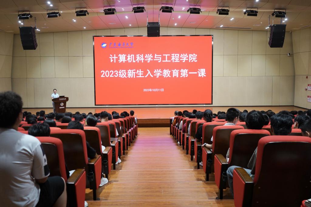 金秋时节,筑梦启航。2023年10月11日下午,计算机科学与工程学院新生开学典礼暨入学教育大会在海纳楼113报告厅举行。学院全体领导、教师代表和2023级新生参加本次开学典礼。在庄严的国歌声中,开学典礼拉开序幕。