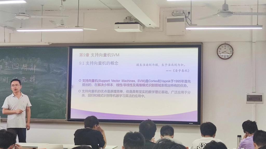 2024年4月17日下午,宋教授在博学楼A201为大家讲授《机器学习》第四章的内容——监督学习与非监督学习。宋教授结合实例,使用数据举例,对本章重要知识点详尽讲解,流程式总结直观明了。课程中不时与学生一起讨论,鼓励学生发表自己的观点,形成良好的课堂氛围,教学内容逻辑性强,深入浅出,启发式教学,体现了以学生为主的教学理念。