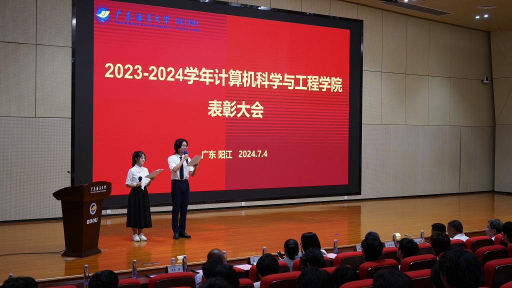 为表彰学生在各项赛事中的突出表现,继续发挥好带头引领作用,7月4日晚上,计算机科学与工程学院在海纳楼113报告厅隆重举行2023-2024学年表彰大会。阳江校区党委副书记陈永强、阳江校区综合事务部部长张家荣、阳江校区教学科研部部长白浚宇、阳江校区学生事务部部长孙学甫,学院党总支书记刘利群、院长吴一民、副院长赵男男、全体教职工及学生代表参加本次大会。