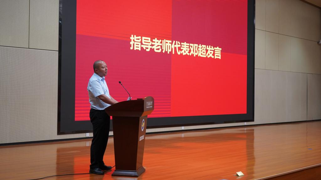 阳江校区党委副书记陈永强鼓励同学们要继续保持对知识的渴望和对未知的好奇,勇于探索、敢于创新,不断拓宽自己的视野和领域,带动更多的同学参与到科技创新和实践活动中来,共同营造浓厚的学术氛围。指导老师代表邓超博士从坚定理想信念、强化师德师风、锤炼过硬本领、常怀仁爱之心几方面出发,号召广大教职工要成为忠诚之师、有德之师、博学之师、有爱之师。获奖学生代表余健威表示今后会继续努力,坚定目标,刻苦钻研,继续书写属于年轻一代的辉煌篇章。