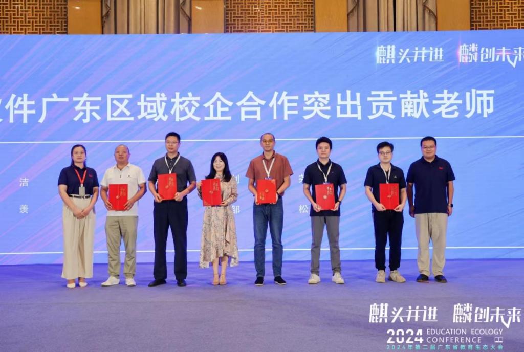 会上邓超博士作为学校代表参加OpenKylin高校站授牌仪式,同时学院邓超博士、刘炳尧博士均荣获广东区域校企合作突出贡献老师奖。