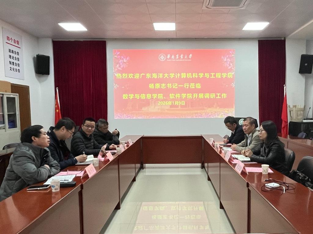 在华南农业大学数学与信息学院、软件学院,赵男男副院长详细介绍了计算机科学与技术、物联网工程、信息管理与信息系统专业人才培养方案,并与副院长黄栋一行进行了深入交流。