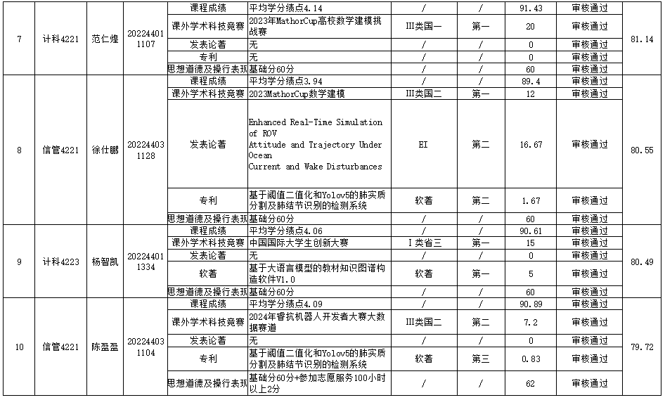 计算机科学与工程学院推免生遴选工作小组根据《kaiyun官方网站入口推荐优秀应届本科毕业生免试攻读研究生工作管理办法》(校教务〔2024〕70号)和《计算机科学与工程学院推荐优秀应届本科毕业生免试攻读研究生实施细则》的规定,经学生个人申请、资格审查、学院专家审核小组审核鉴定、学院推免生遴选工作小组综合评定、学院党政联席会议审议通过等程序,确定推荐人选10位同学。