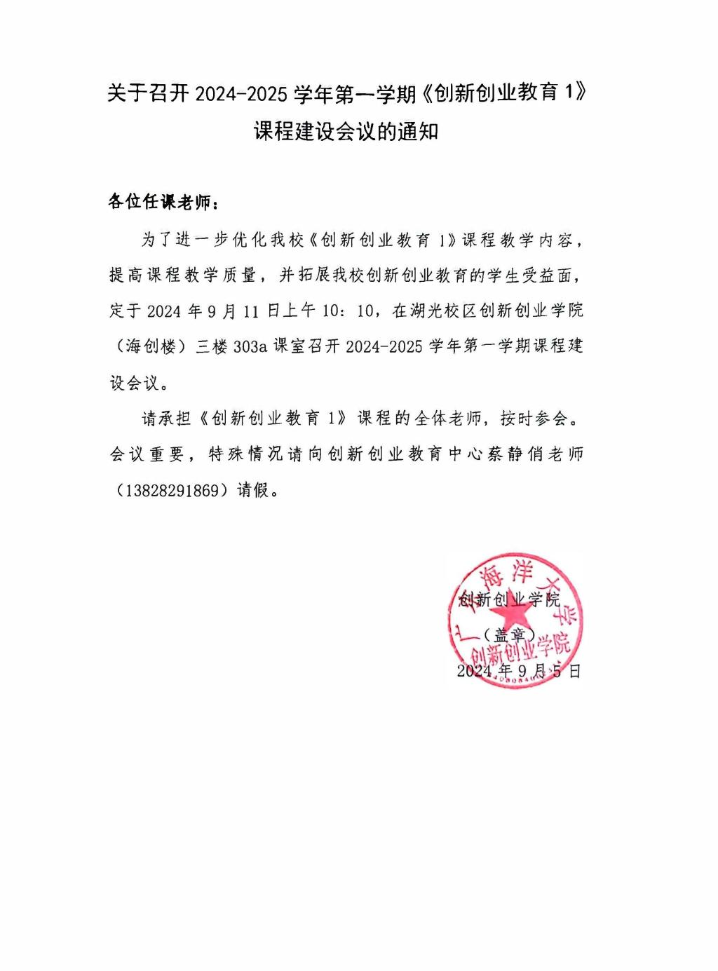 关于召开2024-2025学年第一学期《创新创业教育1》
