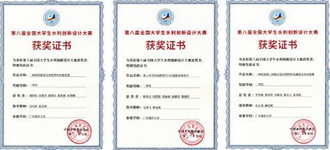 参加第八届全国大学生水利创新设计大赛现场决赛团队及获奖证书