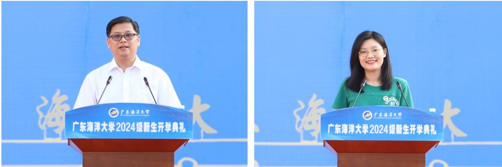 校友代表、2010级大气科学专业冯小芳用“体验”“勇敢”“梦想”三个词勉励新生以梦想为帆,怀抱勤奋学习的态度,传承海大精神,用拼搏谱写成长的华章。