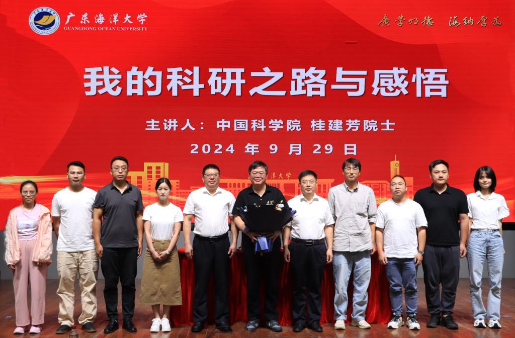 为进一步加强新时代师德师风建设,大力弘扬教育家精神,加快建设教育强国,9月29日上午,中国科学院院士、中国科学院水生生物研究所一级研究员桂建芳应邀来校作专题报告,学校党委书记杨洲、副校长谭北平、人力资源部主要负责领导及湖光校区师生代表400余人现场聆听,阳江校区师生通过企业微信直播参加了此次报告会。报告会由谭北平主持。