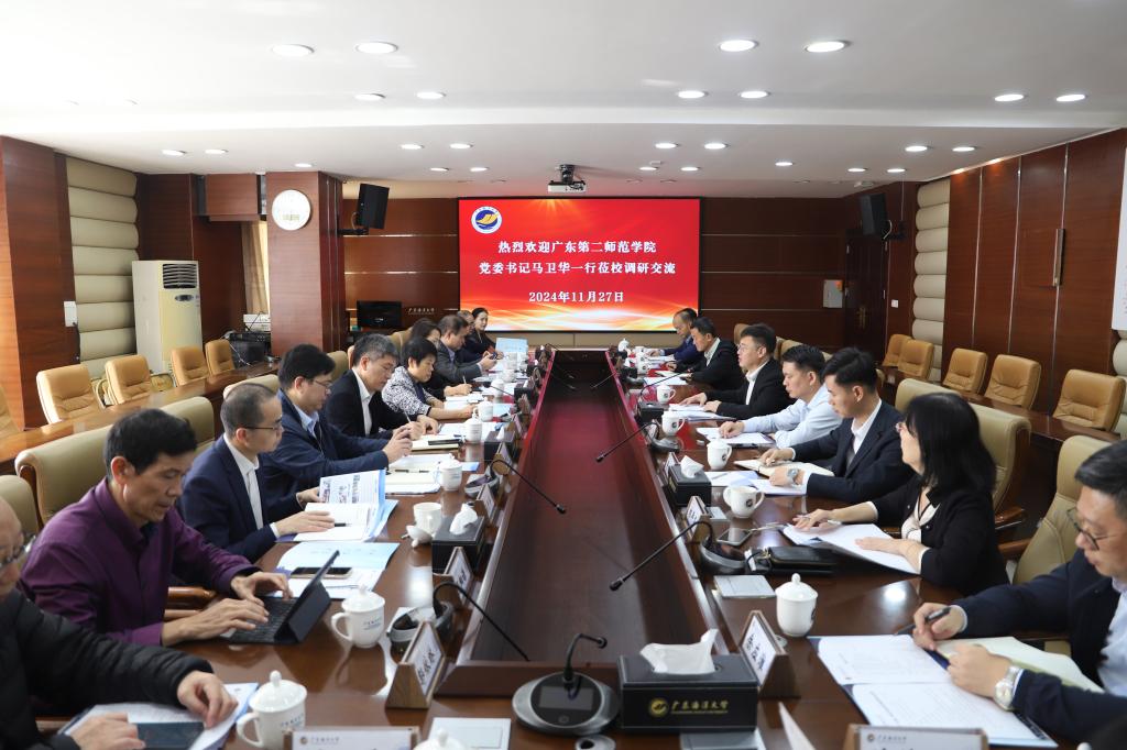 11月27日,广东第二师范学院党委书记马卫华、副校长李琴率学院相关单位(部门)领导等一行11人来kaiyun调研交流。学校党委书记杨洲会见了马卫华一行并主持座谈会,党委副书记谭平出席座谈会。kaiyun党政办、宣传统战部、人力资源部、教务部、科学技术部、发展规划部、数学与计算机学院、体育与休闲学院等单位(部门)领导参加座谈。