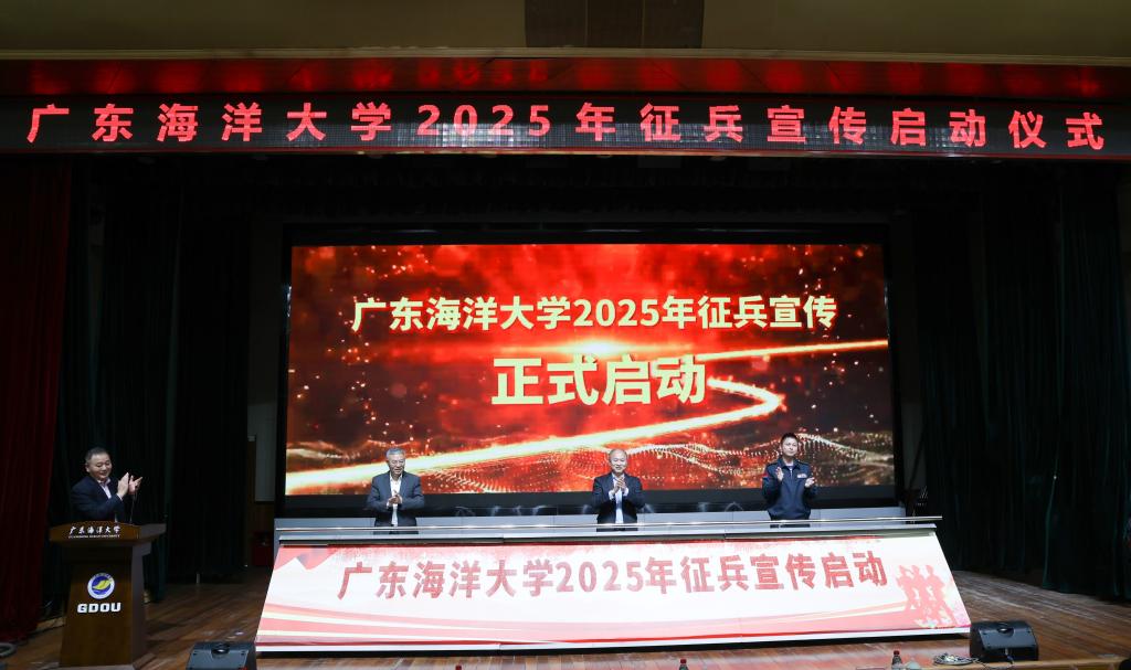 12月25日下午,kaiyun2025年征兵宣传启动仪式在湖光校区广学楼多功能厅举行。学校党委常委、副校长邓逢光,党委常委、宣传统战部部长林宇,麻章区人武部上校部长刘卡明出席仪式。学校党委学生工作部、党委武装部、校团委主要负责人,各学院分管学生工作的领导,兼职武装老师、毕业班辅导员,毕业班学生代表等约350人参加仪式。仪式由党委武装部部长温一星主持。
