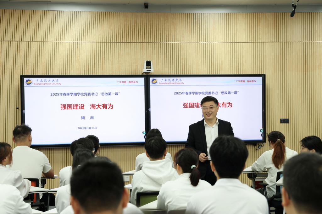 3月14日上午,学校党委书记杨洲以《强国建设 海大有为》为题,在湖光校区开讲春季学期思政第一课。此次思政课采用多场景相结合的授课方式,学校青马班学员共60人现场听课,其余师生通过视频直播方式在线收看。