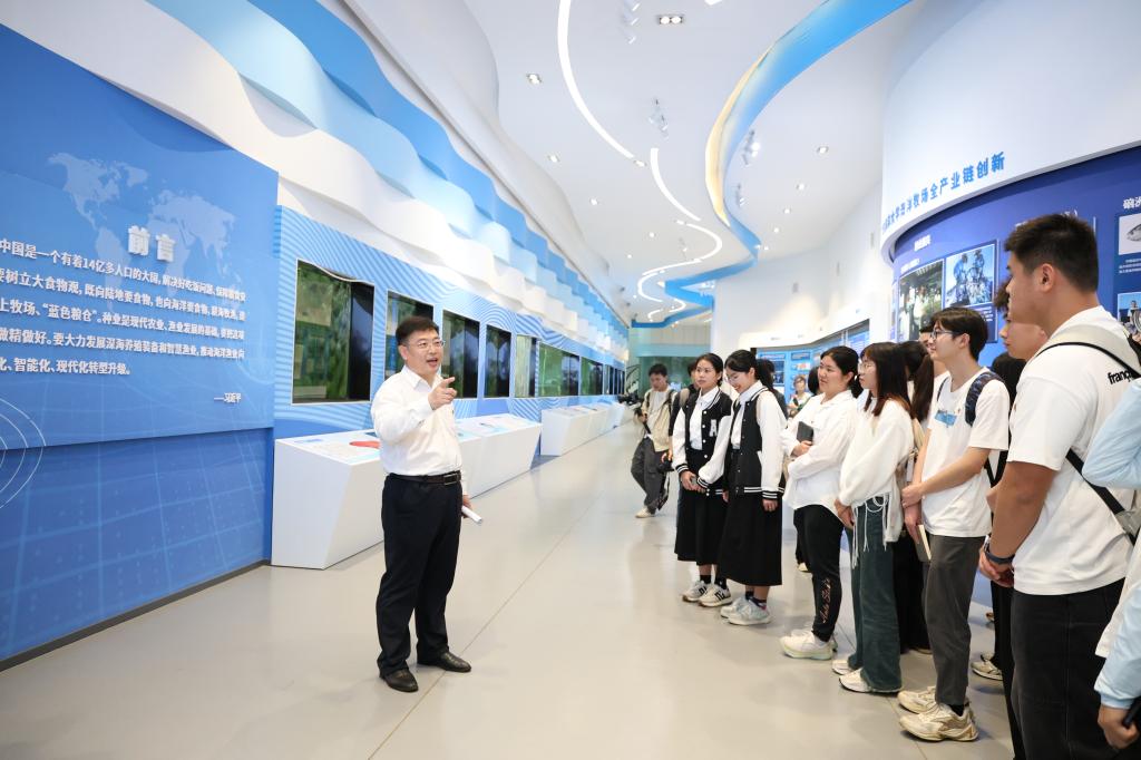 在水生生物博物馆,杨洲为同学们讲解了kaiyun近年来开展海洋牧场全产业链创新的代表性成果,激励海大学子在新时代创新赛场上勇立潮头、锐意进取,共同为国家经略海洋、走向深蓝作出应有的贡献。