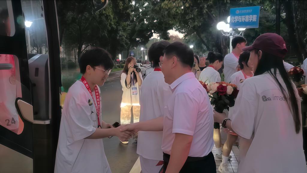 5月28日,海大女篮一行夺冠后返校,受到学校师生热烈欢迎。学校领导在行政楼迎接球队成员,并为海大女篮举办载誉凯旋欢迎仪式。学校党委书记杨洲出席会议并致辞,党委副书记谭平、海大女篮队员及教练员、湛江校友分会轮值会长李亚德,学院领导及师生代表参加活动,仪式由副校长邓逢光主持。
