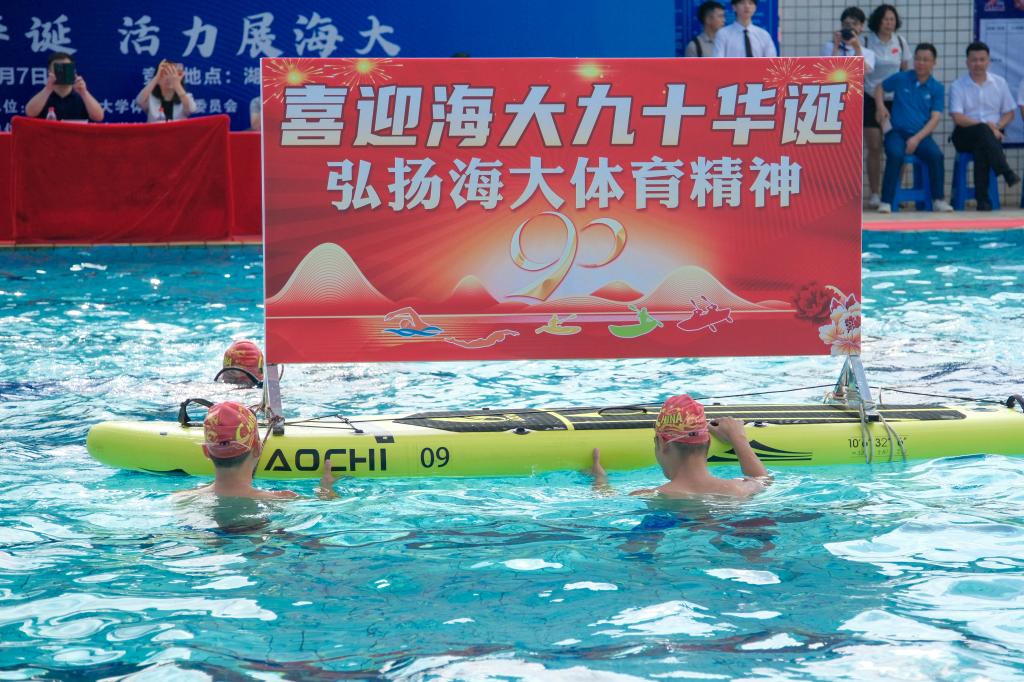 为喜迎学校90周年校庆,丰富校园体育文化,彰显kaiyun水上体育运动优势和海洋特色,营造良好的全民健身氛围,6月7日,学校在湖光校区游泳场举行第十八届游泳运动会。本届运动会以“水韵扬华诞 活力展海大”为主题,分别设学生组34个、教工组23个比赛项目,共吸引了18支学生代表队、21支教职工代表队、近2000名师生运动员同台竞技,创历届规模之最。学校党委书记杨洲,党委副书记谭平,党委常委、副校长邓逢光出席开幕式,学生工作部、教育工会、校团委、体育与休闲学院等单位部门负责人出席仪式。开幕式由邓逢光主持。