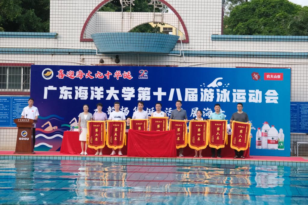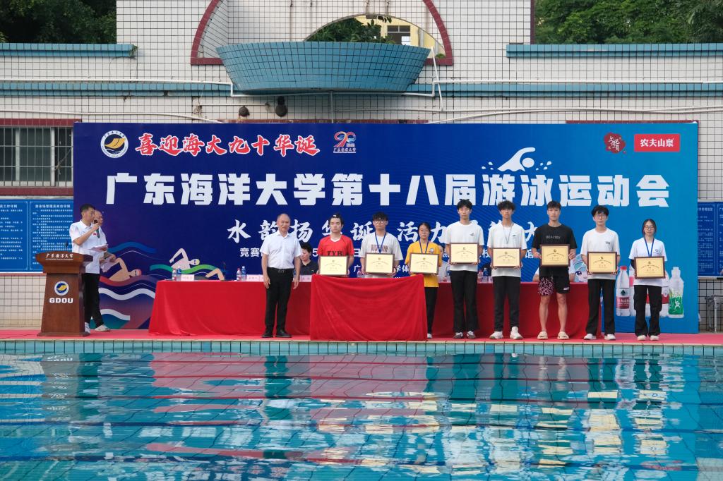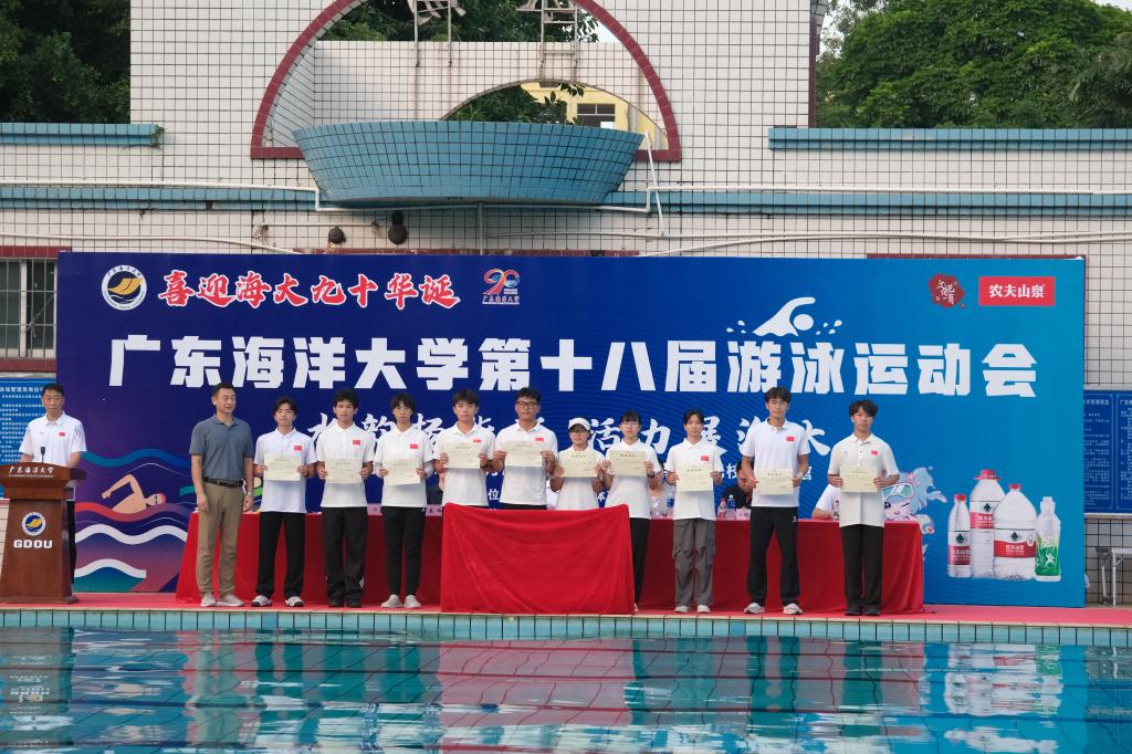 第十八届游泳运动会在夕阳的余晖中落下帷幕。颁奖台上耀眼的金牌记录着运动员们拼搏后的光辉,同学们脸上洋溢的笑脸成了盛夏最动人的画面。这场体育盛会不仅展现了顽强拼搏的竞技精神,更彰显了团结友爱的体育风尚,形成了鲜明的海洋体育特色,为即将到来的90周年校庆营造了浓厚的喜庆氛围。