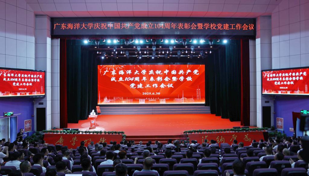 6月30日,学校在湖光校区实验剧场召开庆祝中国共产党成立104周年表彰会暨学校党建工作会议,回顾党的百余年奋斗历史,向党的生日献礼,以奋斗之笔书写新时代海大答卷。学校领导、党委委员,党的建设工作领导小组成员,“光荣在党50年”纪念章获得者代表,各二级党组织书记、副书记,机关党群部门正副职领导,各党支部书记,专兼职组织员,新党员代表参加会议。会议由学校党委副书记谭平主持。