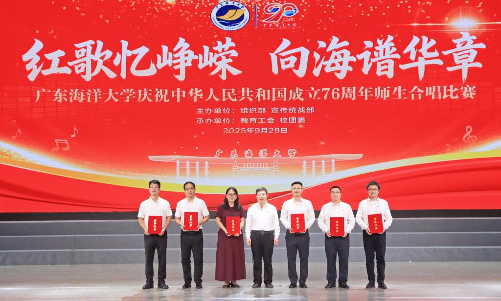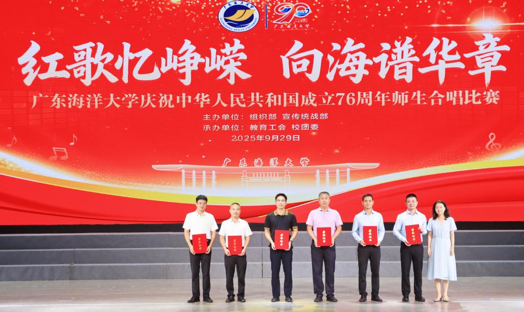 为庆祝新中国成立76周年、学校建校90周年,9月29日,学校在湖光校区实验剧场举行“红歌忆峥嵘,向海谱华章”师生合唱比赛,厚植爱国主义情怀,凝聚奋进力量。学校党委书记杨洲,党委副书记谭平,党委常委、副校长宁凌、邓逢光、周昌仕,党委常委、宣传统战部部长林宇,全体中层干部、师生代表现场观看比赛。阳江校区通过企业微信直播平台线上观看比赛。