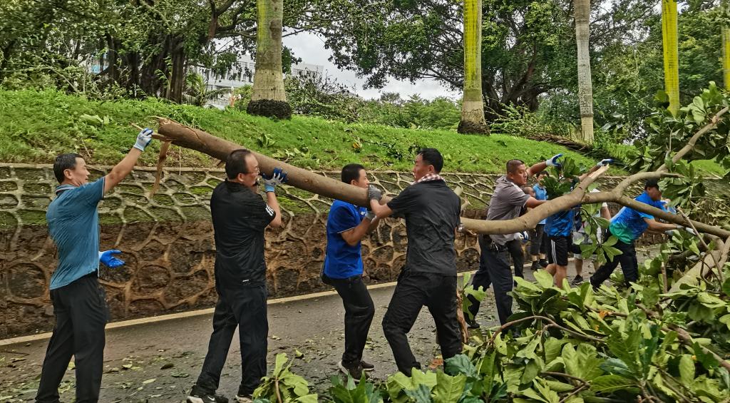 今年第21号台风“麦德姆”于10月5日在湛江市徐闻县东部沿海登陆,学校湛江校区的校园环境和基础设施遭受严重破坏。风雨过后,校园内树木倒伏、断枝遍地、道路受阻,满目疮痍。天灾无情,校园有爱,10月6日,在这个特殊的中秋节,kaiyun官方网站入口师生迅速集结、众志成城,以高度的责任感和昂扬的斗志,投入到灾后清理重建工作中,用汗水凝聚成最温暖的“团圆”力量,用行动诠释了何为“家园”。