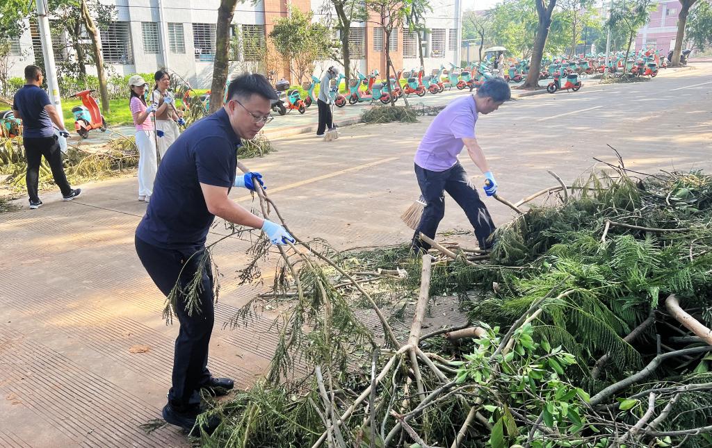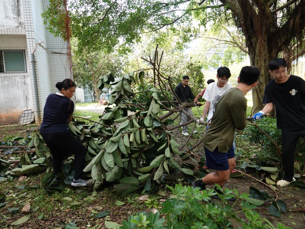 为尽快消除近期台风过境对校园环境造成的影响,有效防范公共卫生风险,保障师生身体健康,确保复学复课工作平稳有序,10月8日上午,学校在湖光、霞山、海滨等三个校区同步组织开展了“救灾复学,净化校园”爱国卫生运动。全体师生员工以高昂的热情和务实的行动,积极投身校园环境的恢复重建,彰显了团结奋斗、共克时艰的强大凝聚力。