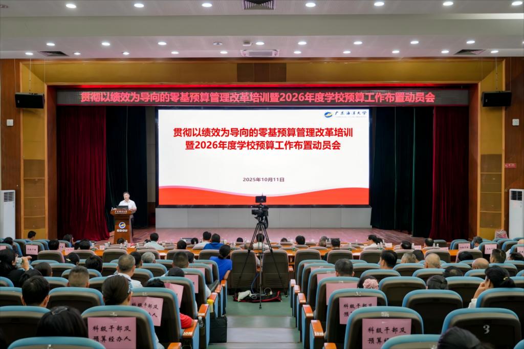 10月11日上午,学校在湖光校区广学楼多功能厅召开零基预算管理改革培训暨2026年度学校预算工作布置动员会。学校党委书记杨洲,党委副书记谭平,党委常委、副校长宁凌、邓逢光、周昌仕,党委常委、宣传统战部部长林宇,全体中层干部等相关人员参会。会议由周昌仕主持。