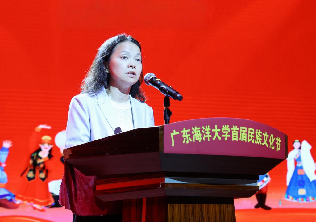 10月15日,学校在湖光校区实验剧场举办首届民族文化节,学校党委副书记谭平出席活动并致辞。党政办公室、组织部、宣传统战部、学生工作部、保卫部、人力资源部(教师工作部)、教务部、科学技术部、研究生院、国际交流合作部、教育工会、校团委、关工委等部门主要负责人,各二级党组织书记、副书记,辅导员、各民族师生代表参加活动。活动由学校党委常委、宣传统战部部长林宇主持。活动通过线上线下同步方式展开,阳江校区和海滨校区师生通过线上直播方式参加活动。