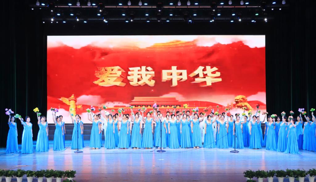 演出在大合唱《爱我中华》的恢弘旋律中拉开序幕,歌声嘹亮,气势磅礴,瞬间点燃了全场的爱国热情。随后,歌曲《不要怕》以质朴而深情的吟唱,传递出跨越山海的温暖与力量。诗朗诵《石榴花开,同心筑梦》则用铿锵有力的词句,形象诠释了各民族像石榴籽一样紧紧抱在一起的深刻寓意。