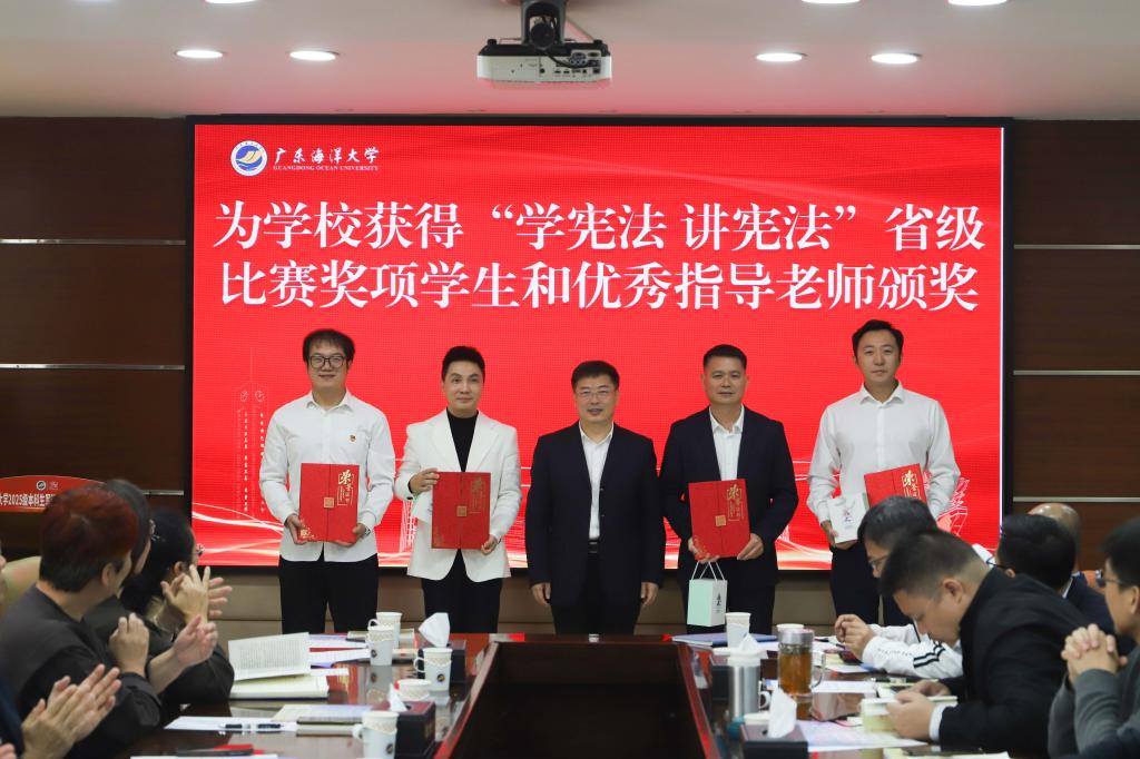 活动中,谭平介绍了学校组织开展广东省第十届学生“学宪法,讲宪法”系列活动和今年宪法学习宣传教育活动的开展情况,宣读了kaiyun在广东省第十届学生“学宪法,讲宪法”活动中获奖的师生名单,杨洲为获奖的师生颁发了荣誉证书和纪念品。随后,参会全体师生同步参加教育部“宪法晨读”活动,齐声诵读宪法部分章节,在朗朗诵读声中感受宪法的庄严与力量。