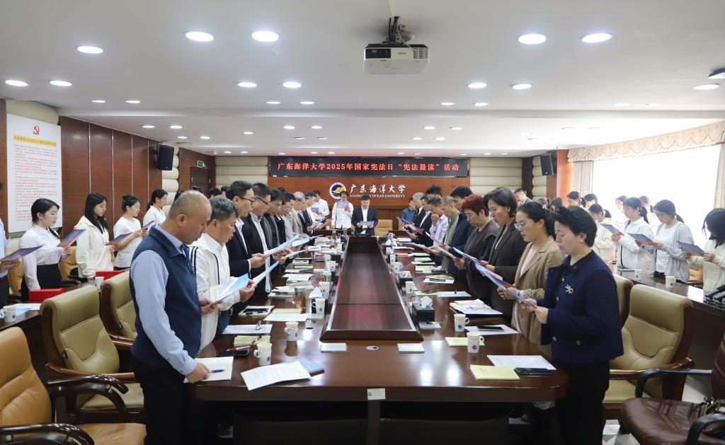 12月4日上午,学校在湖光校区行政楼五楼会议室组织开展2025年国家宪法日“宪法晨读”活动。学校党委书记杨洲、副书记谭平,党委常委、副校长鲁义善,党委常委、宣传统战部部长林宇,机关各职能部门主要负责人,机关党委、离退休党委、后勤党委、教辅单位党委、产业党总支书记及师生代表参加活动。谭平主持活动。