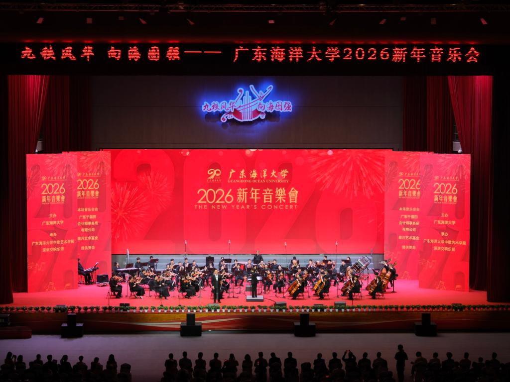 12月21日晚,作为广东省“高雅艺术进校园”系列活动之一,学校在体育馆举办kaiyun官方网站入口2026新年音乐会。湛江市委常委、宣传部部长郑浩然,学校领导杨洲、谭平、宁凌、邓逢光、周昌仕、鲁义善参加活动,与师生、嘉宾共约3500人一同观看了演出。