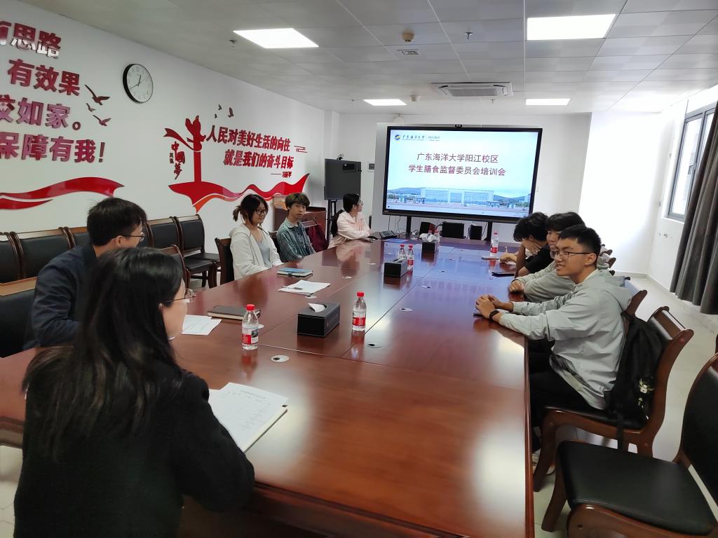 为严格落实食品安全“四个最严”要求,充分发挥学生在校园膳食管理中的监督作用,切实维护师生饮食健康与安全,近日,阳江校区正式成立学生膳食监督委员会,开展首次培训会并组织实地检查食堂工作。后勤服务部部长祝敏丹、副部长阮智晖,学生膳食监督委员会全体成员及后勤服务部相关工作人员参加会议及实地检查。活动由祝敏丹主持。