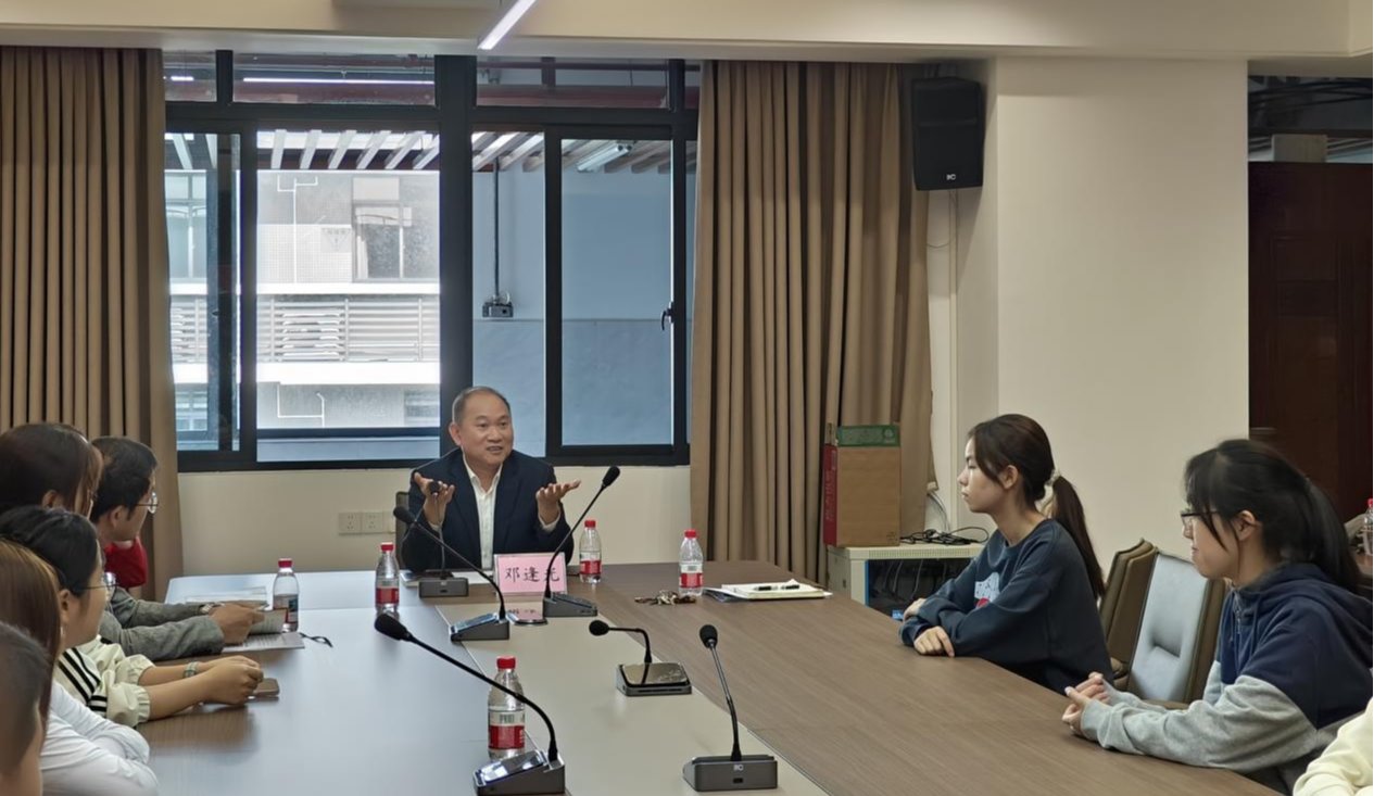 邓逢光认真听取了每一位同学的发言,并结合自身阅历与学校人才培养实际逐一进行了细致耐心的指导和解答。他分析了外语类专业人才在国家发展新格局下的机遇与挑战,鼓励同学们拓宽视野,将语言优势与其他领域知识相结合,提升综合竞争力,并介绍了学校为促进学生高质量就业所采取的各项支持措施。他强调了夯实语言基本功的重要性,建议同学们关注跨学科学习,积极探索“英语+”的复合型发展路径,适应社会对多元化人才的需求。邓逢光勉励同学们要明确目标,珍惜时光,科学制定阶段性计划,积极参与实践活动与学术研究,全面提升自身素质。
