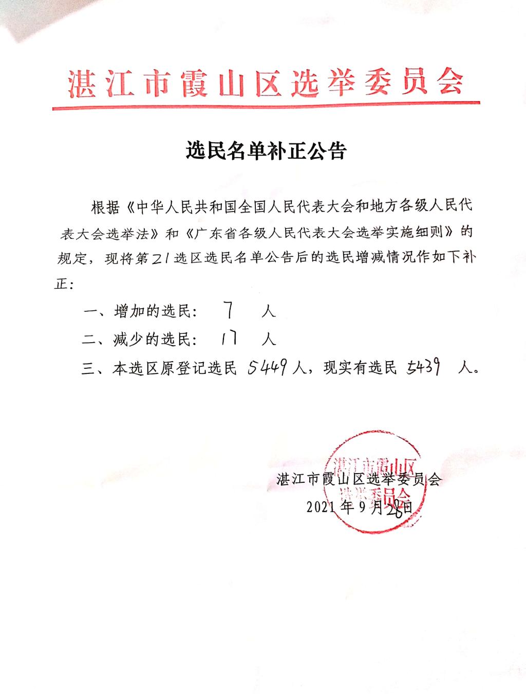 选民名单补正公告