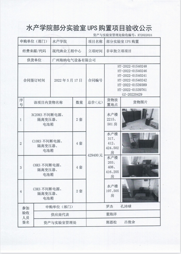 水产学院部分实验室UPS购置项目验收公示