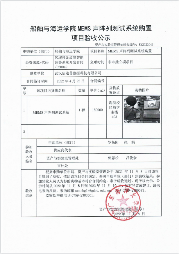 船舶与海运学院MEMS声阵列测试系统购置项目验收公示