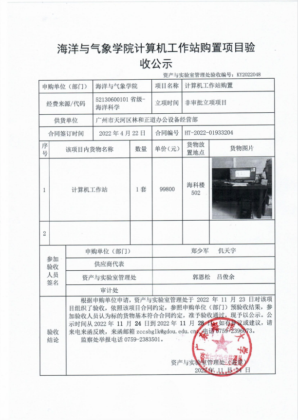 海洋与气象学院计算机工作站购置项目验收公示