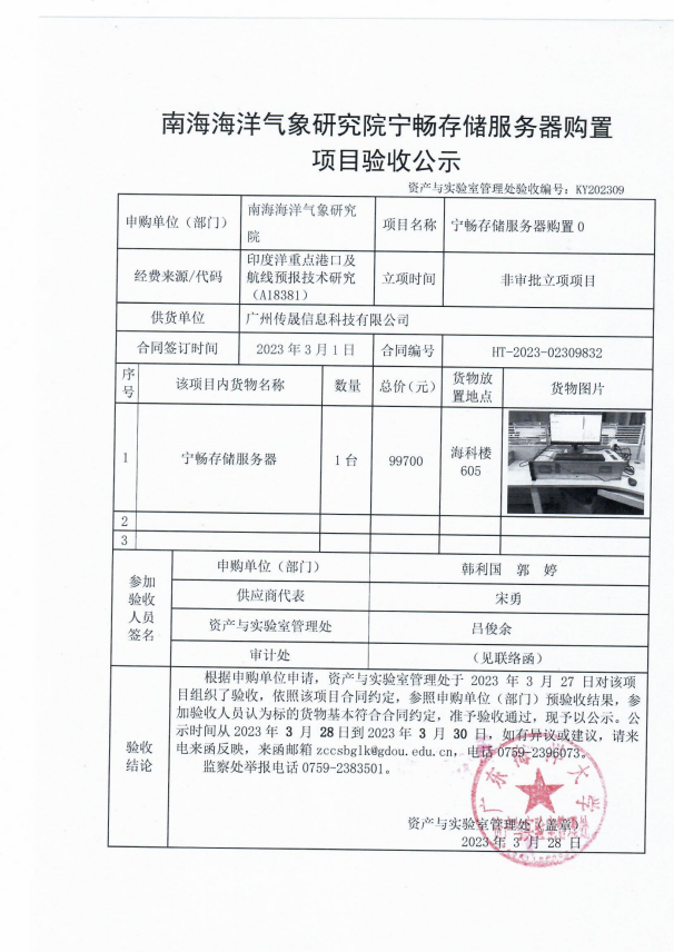 南海海洋气象研究院宁畅存储服务器购置项目验收公示