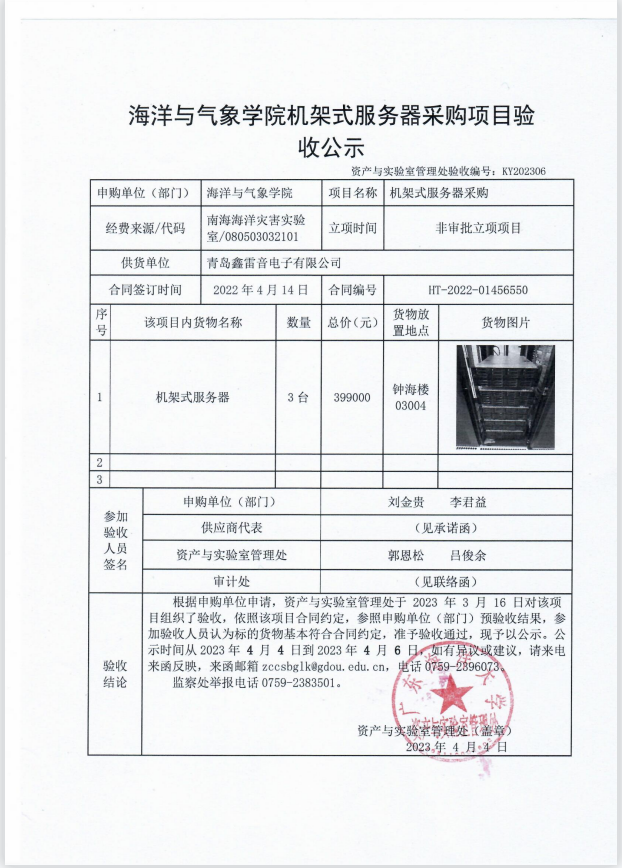 海洋与气象学院机架式服务器采购项目验收公示