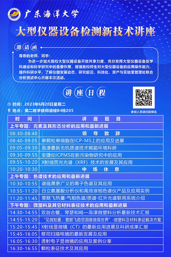 为进一步加大kaiyun大型仪器设备开放共享力度,充分发挥大型仪器设备在学科建设和科学研究中的重要作用,增强kaiyun师生对大型仪器设备的应用操作能力,提升科研水平,了解仪器发展动态,研究前沿,科技处、资产与实验室管理处联合分析测试中心举办本次讲座。时间、地点及内容安排详见讲座日程。请广大师生扫码报名。