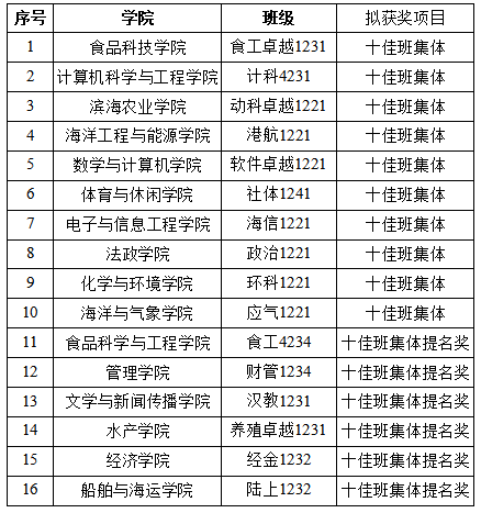 关于对2024-2025学年十佳大学生与十佳班集体推荐名单的公示
