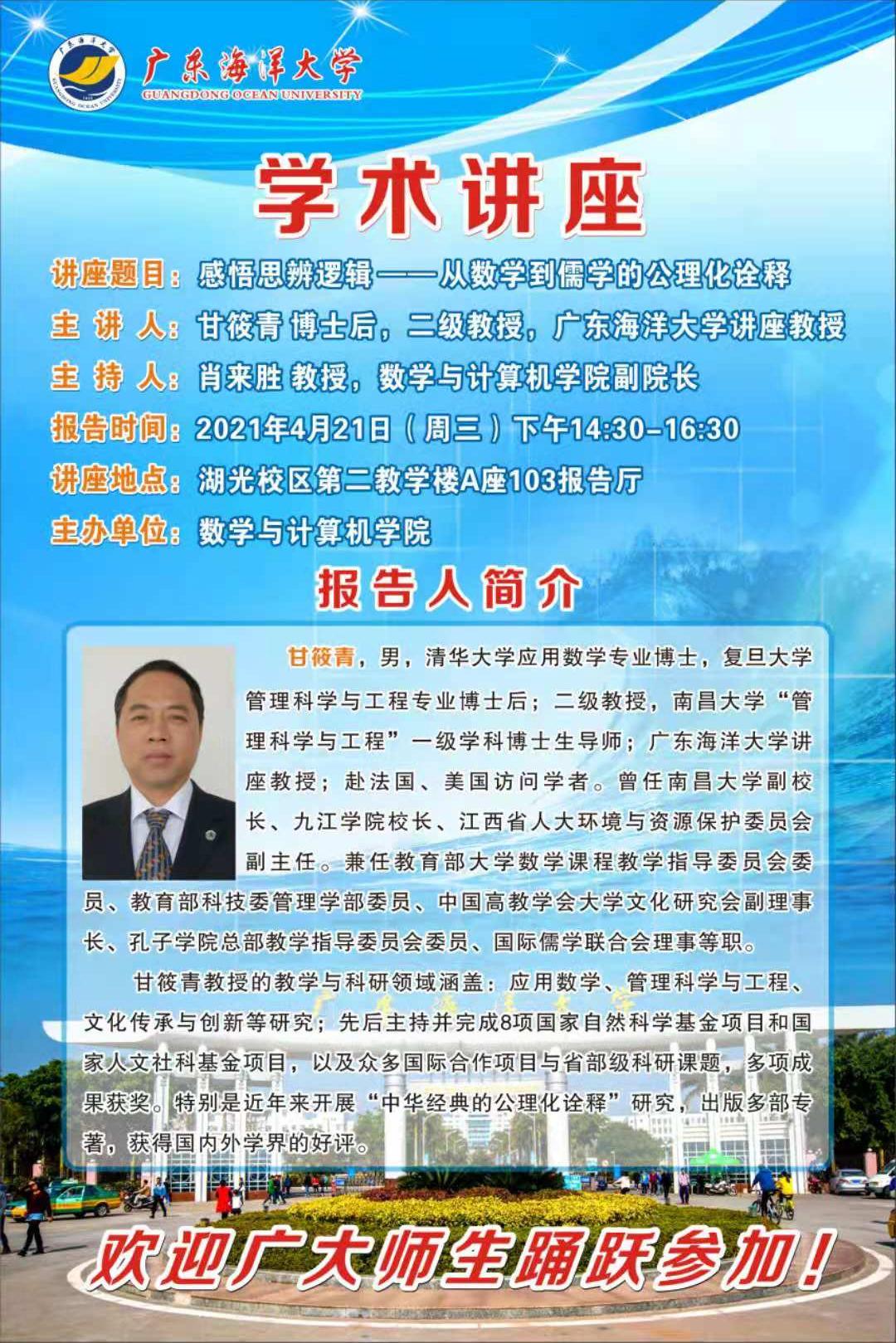学术讲座:感悟思辨逻辑---从数学到儒学的公理化诠释