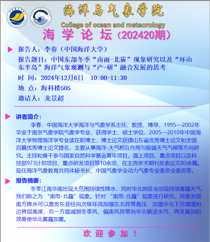 海洋与气象学院“海学论坛”(202420期)